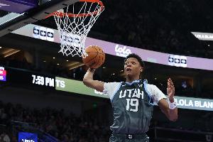 爵士5号秀贝利上半场表现可圈可点,他打了19分36秒,10投5中(三分4中1),拿到11分2篮板2助攻,有1次失误,正负值-10。