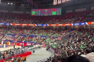 从视频中,可以听到客场的辽宁球迷齐声喊着助威口号:“1、2、3、4,我爱辽篮。”